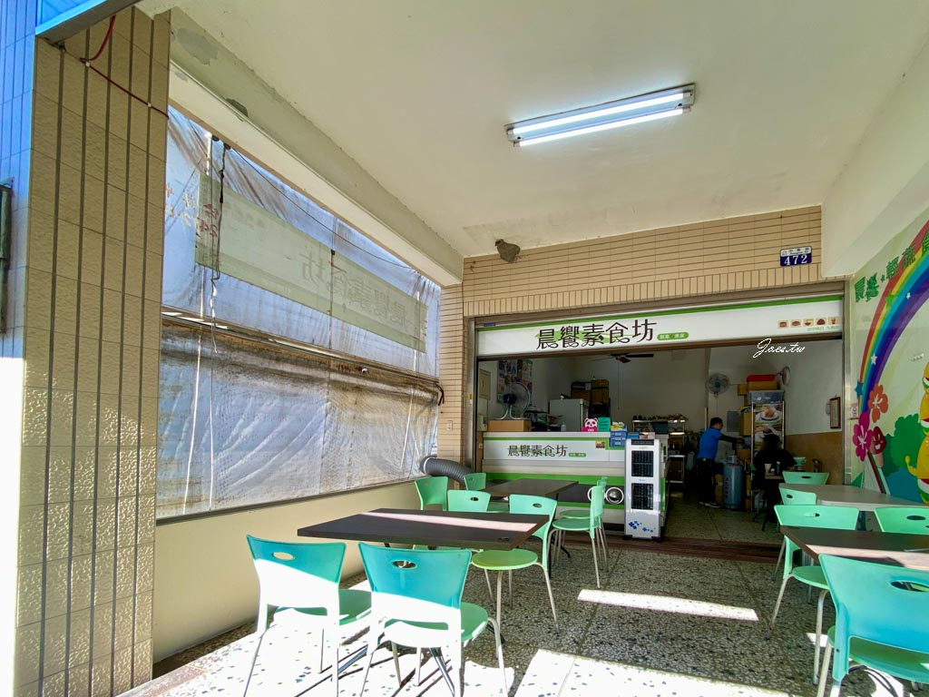 烏日素食|晨饗素食坊:中西式多樣蔬食早餐,Google ★4.5 評價,九德捷運站步行約 150 公尺。