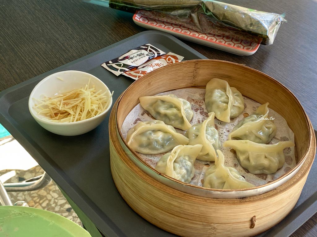 店家在我說點蒸餃時有說如果是外帶的話建議要快點吃不然皮會慢慢變硬影響口感,我是選內用,內餡吃得到有青江菜/冬粉/豆腐/香菇頭/腐皮,本身調味就蠻夠的。