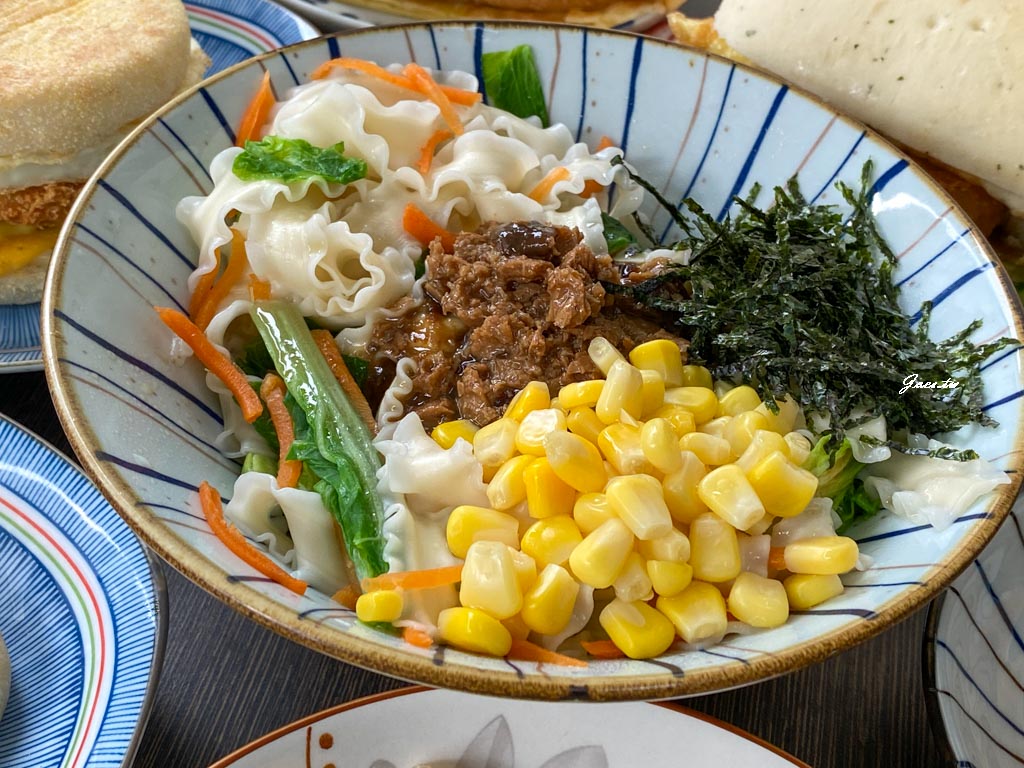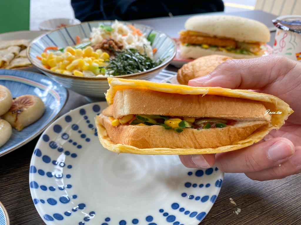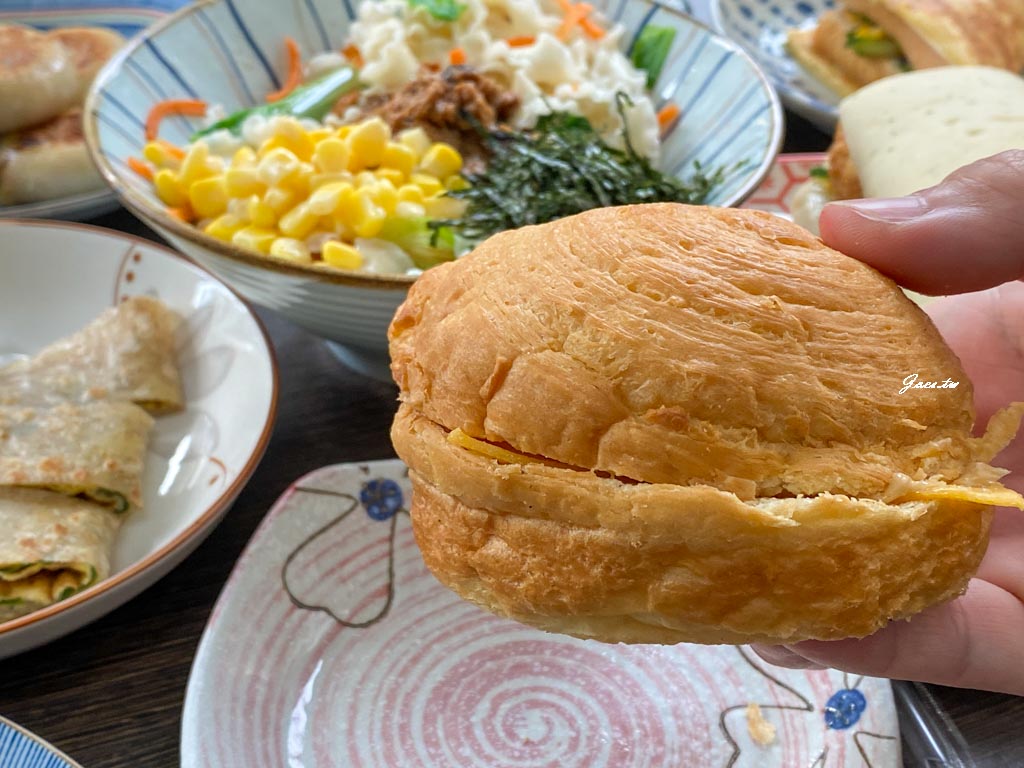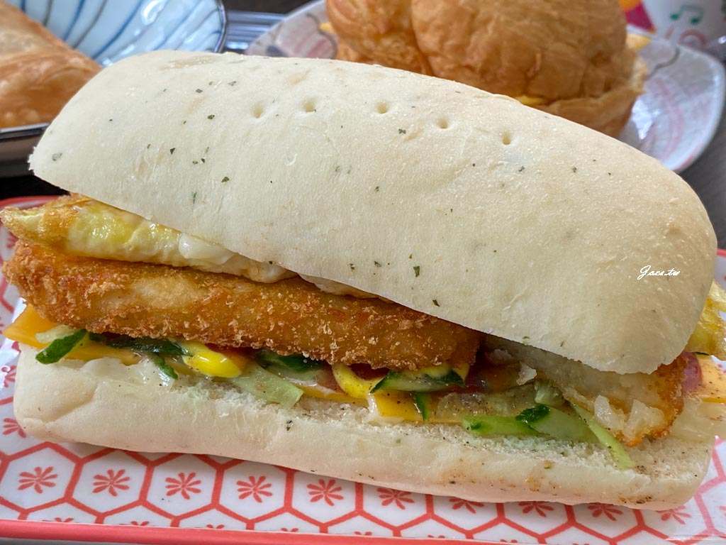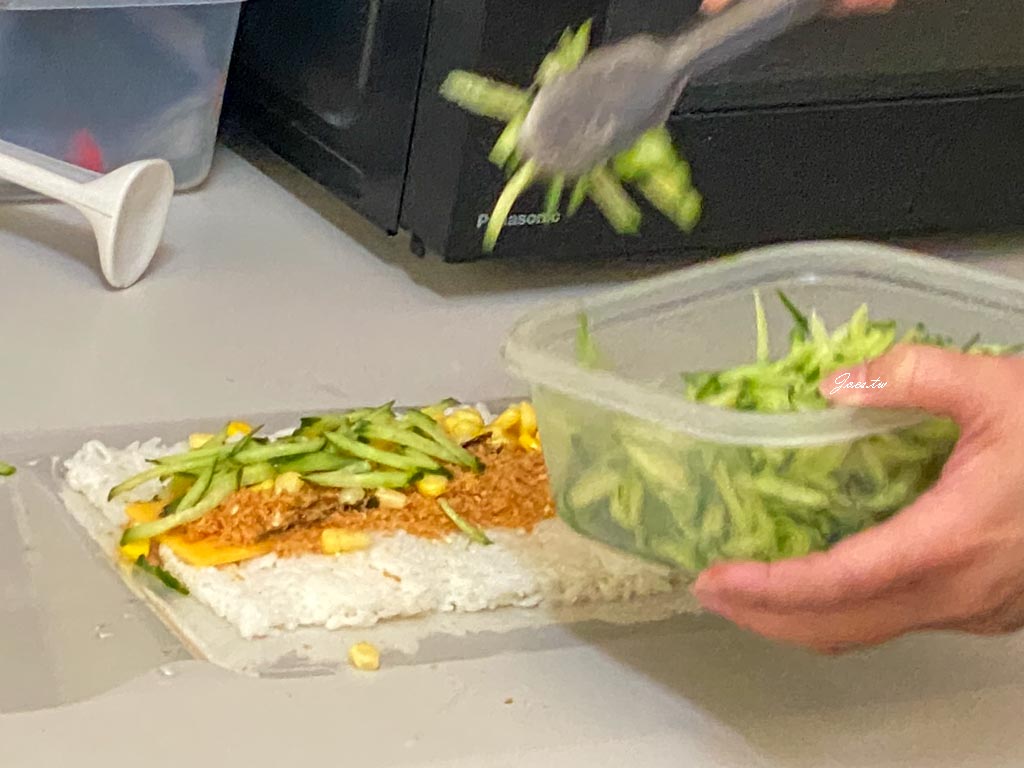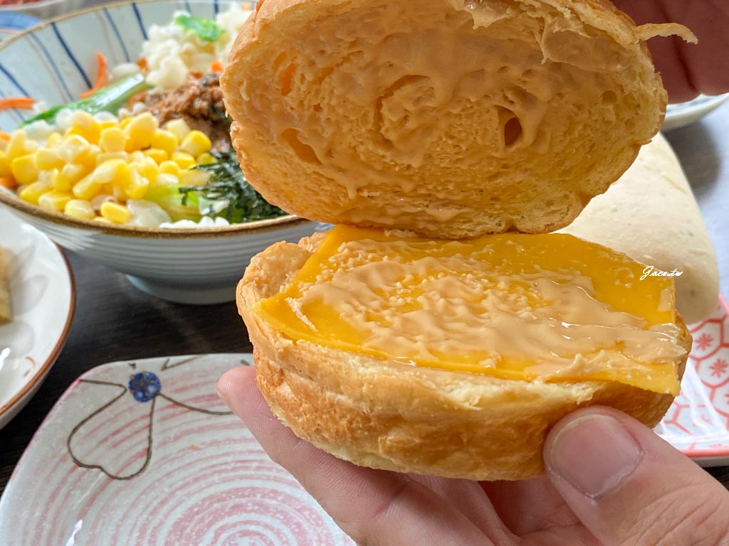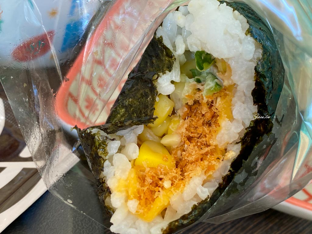 內餡有素鬆/小黃瓜/玉米/起司片,素鬆很酥香,一整個吃來鹹鹹甜甜又有口感。