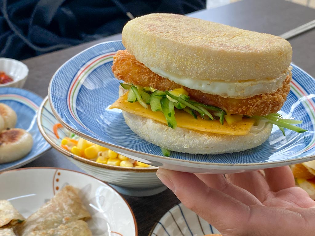位於烏日中華路上的晨饗素食坊,又是間打破了個人以往對素食早餐只有簡單麵食的刻板印象。店內提供不少中西式的豐富餐點,從層次酥脆的丹麥堡、早餐少見的蒸餃,到帶有海鮮鮮味的猴頭菇蘿蔔糕應有盡有。餐點雖多以蛋奶素為主,但店家也有提供部分全素選項(店家有告知煎台共用)。