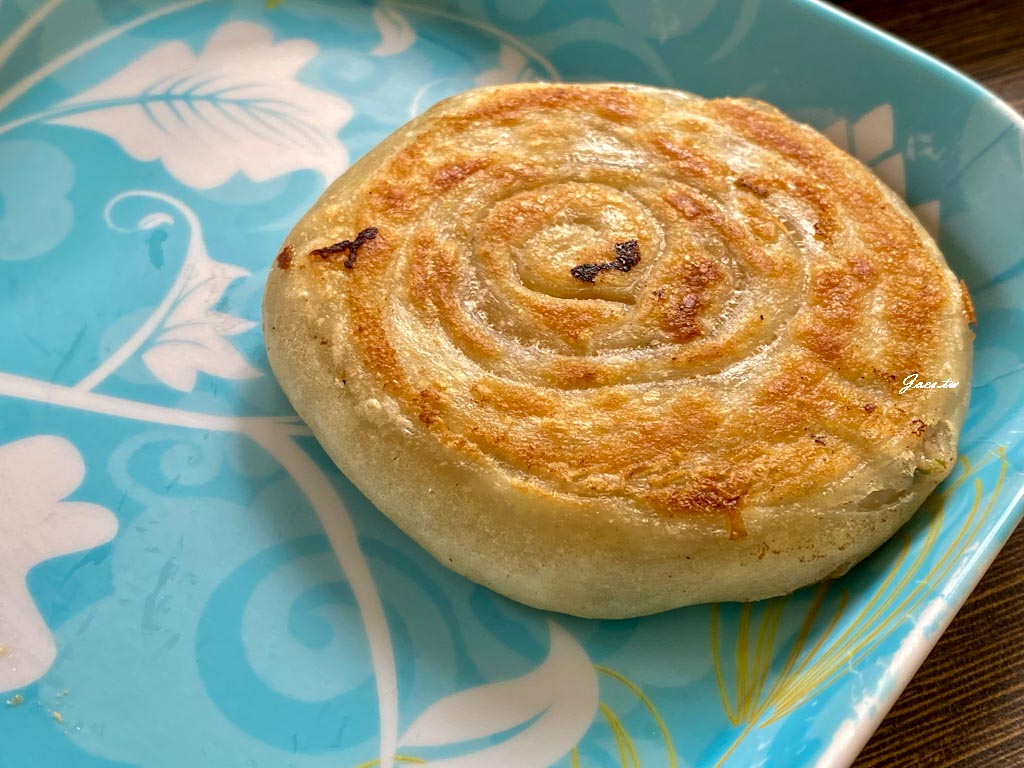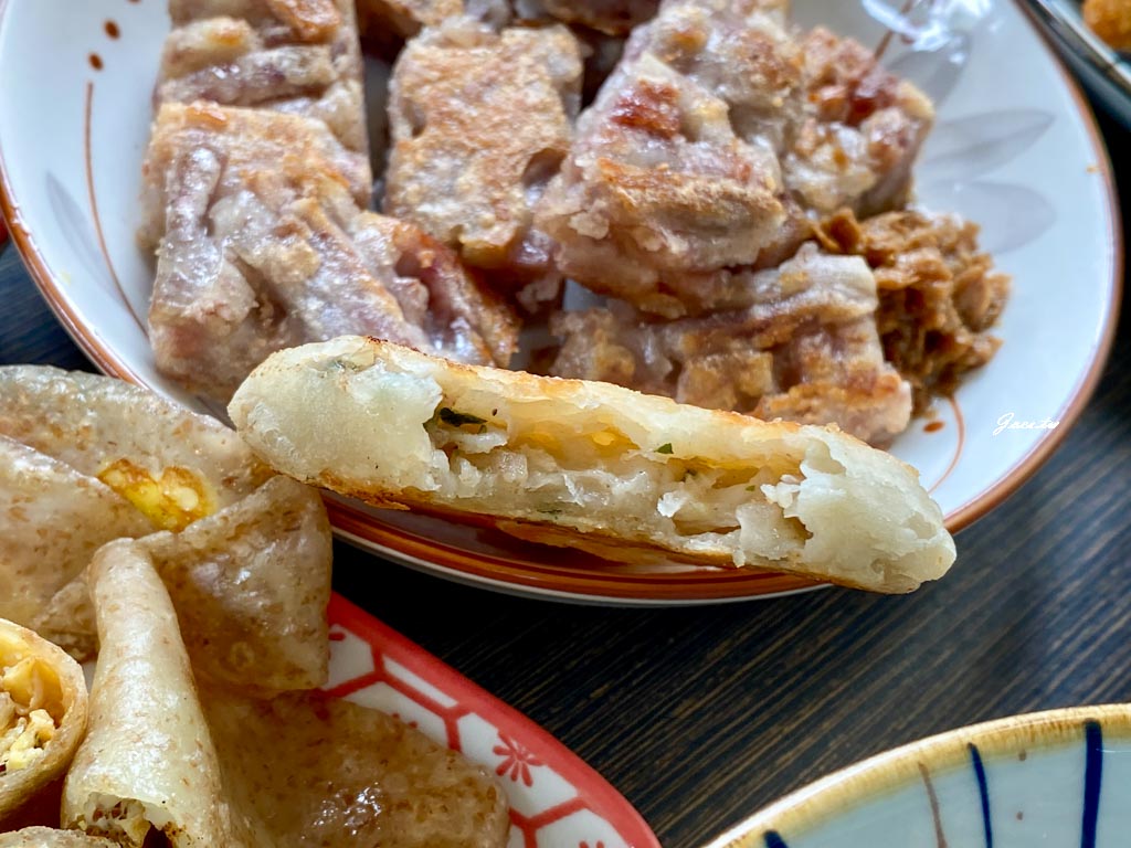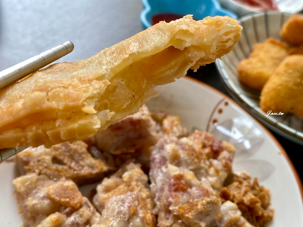 蘿蔔絲酥餅吃得到一層層結構緊密的口感,外皮煎至金黃硬脆酥香。