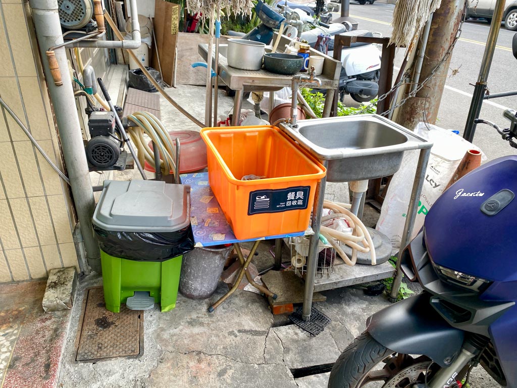 店面入口設有餐具回收區與洗手台。