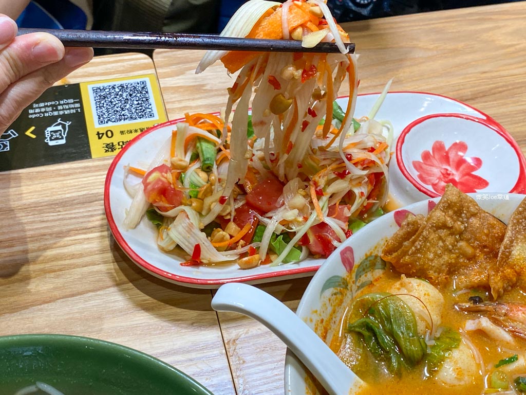 對我個人來說酸度有辣味可,但沒什麼甜味有點可惜, 而當天吃到的木瓜絲是爽脆的,口感個人有偏好。