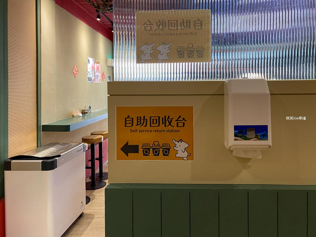 自助回收台位在店家吧台區最尾端,衛生紙則在牆面處。