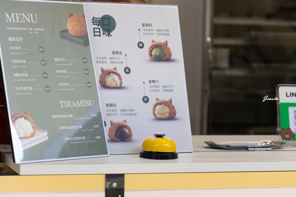 近期前往幾回看到的菜單除了固定的泡芙每日口味也有不定期的甜點,聽店家說都會不定期發布在他們的IG或現場告知。