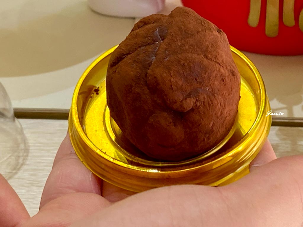 個頭小巧,外層撒滿巧克力粉。