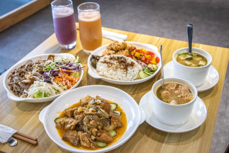 在一陣討論後,決定點一份乾燒鱷龍腿(微辣)、五行涼麵、鱷香腸飯、鱷魚小排味噌湯、薰衣草白木耳露以及粉玫瑰白木耳露….