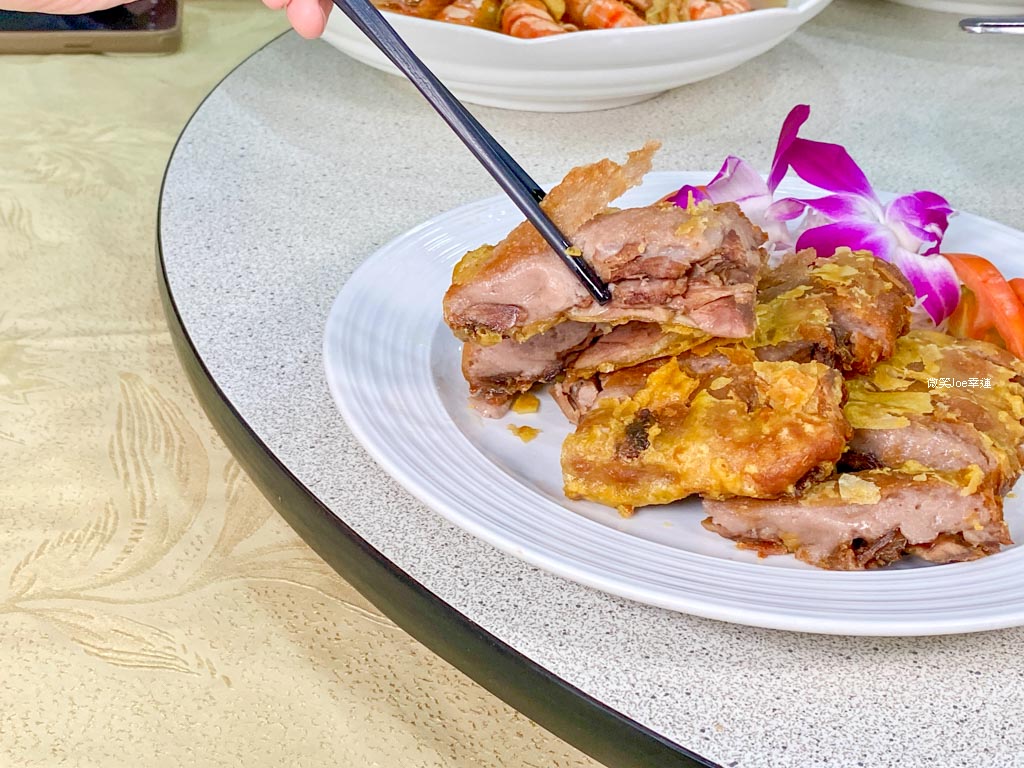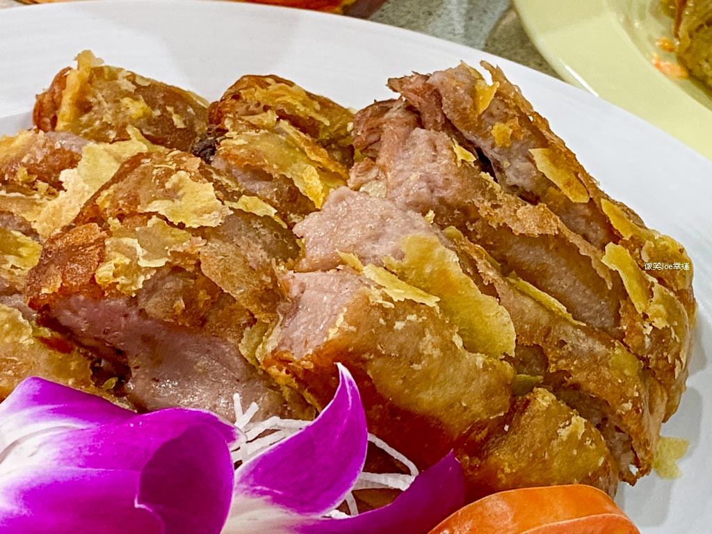 芋泥鴨選用整隻蒸熟去骨的鴨,鋪上芋頭下鍋油炸,外層酥脆,鴨肉柔軟。