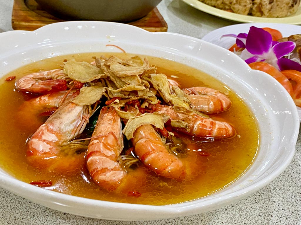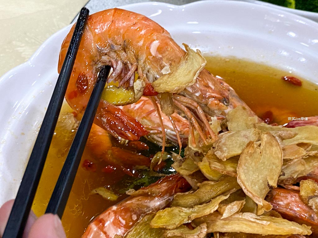 大草蝦肉質較結實、彈牙爽口,底部帶有鮮蝦味的麻油湯汁更是完美,自主再加一點配料或麵條食用也超適合。