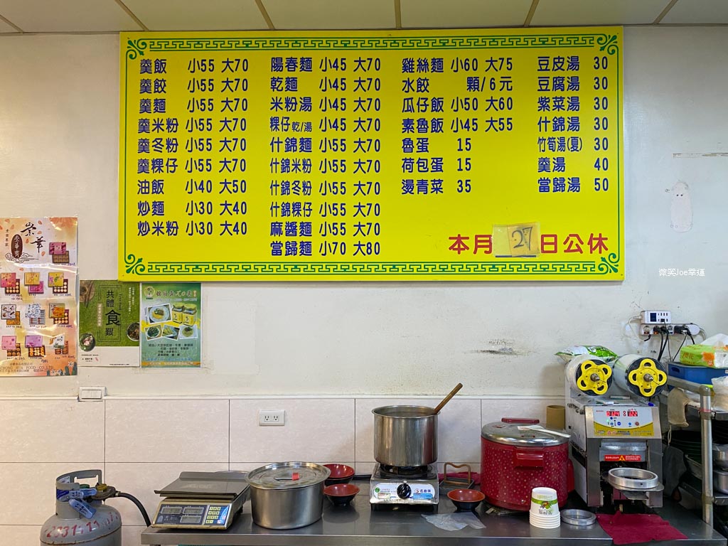 提供麵/飯/湯/小菜可選擇,一角會備註該月的休息日。