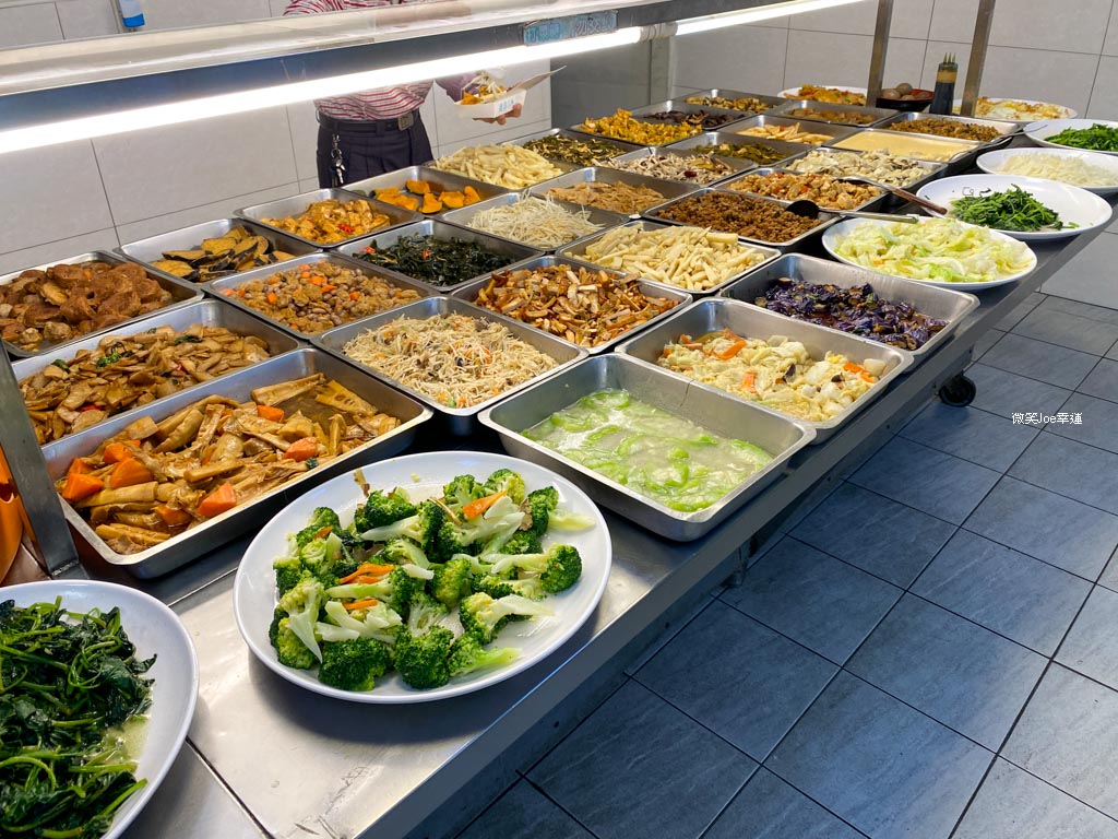 店內的自助餐是採用秤重來計價的唷,這盤約115上下,裡頭的花椰菜雖感覺是水煮但鹹得剛好吃起來微有油感點綴,口感也有還不錯,蛋也有入味,只有豆乾差強人意,有個像是雞卷的食材個人有愛,沒想到一點也吃不出素味,其實夾的這盤都一樣會讓人以為就是在吃平常的自助餐,如果你是葷食轉素食的朋友應該對這家多數菜色的接受度也很高哦。