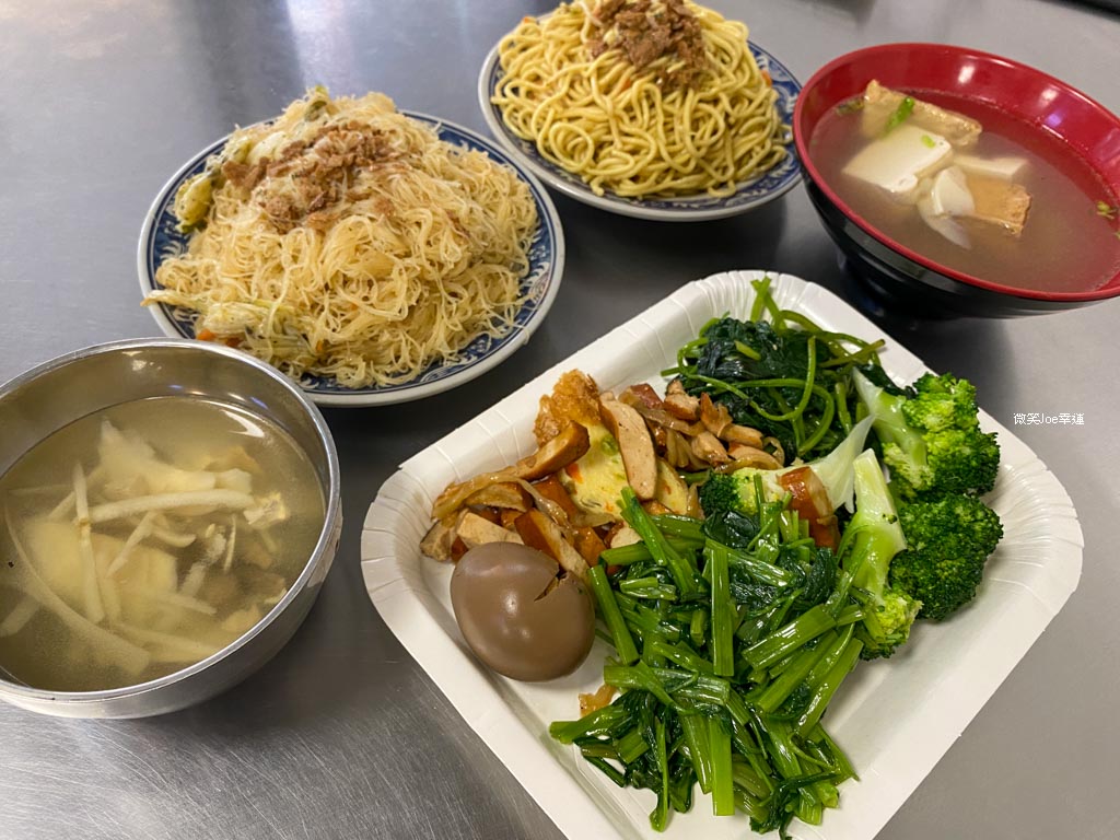 此次點了自助餐/什錦湯/炒麵/炒米粉,一旁還有店家提供自助餐自取的每日湯品。