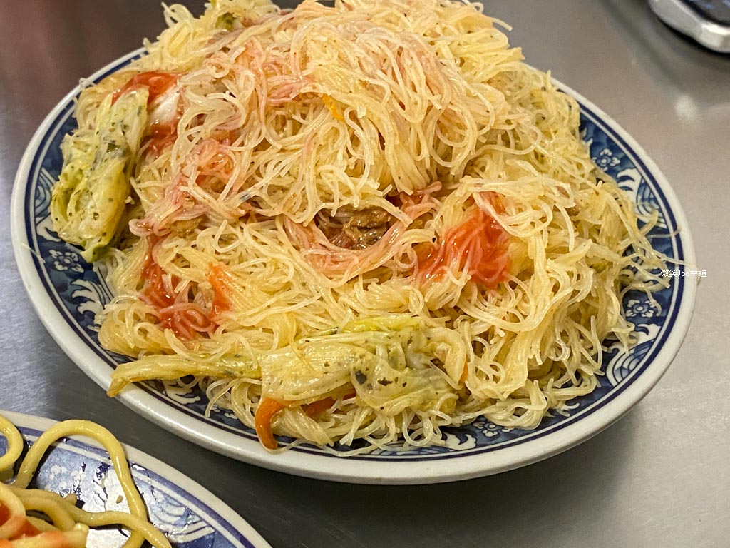 炒米粉(小),這盤米粉上有淋著素燥還有夾雜些許紅蘿蔔絲與高麗菜,入口頗濕潤,口感帶有韌性,米粉更是將炒料的香與自身全盤融合,有鹹香卻不會過頭,加些甜辣醬更是讚,比起炒麵我這次更喜歡米粉。