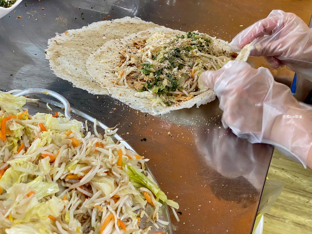 呷潤餅 不管要當正餐還是下午茶吃,都蠻適合的,潤餅皮提供的種類多細數有九種,雖然是每日隨機的,但配料也有不少款,口味則有12種,不過小提醒潤餅本身裡頭有濕料,還是健議到手時趁快品嚐才有最佳口感哦。完整食記介紹