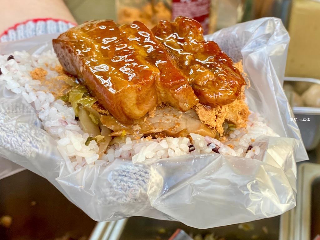 其實飯糰基本配料都類似,但主菜與配角略有不同便可創造出不同的火花來,整塊老滷爌肉塞進來加那些配料就像帶份手拿版的爌肉便當。完整食記介紹