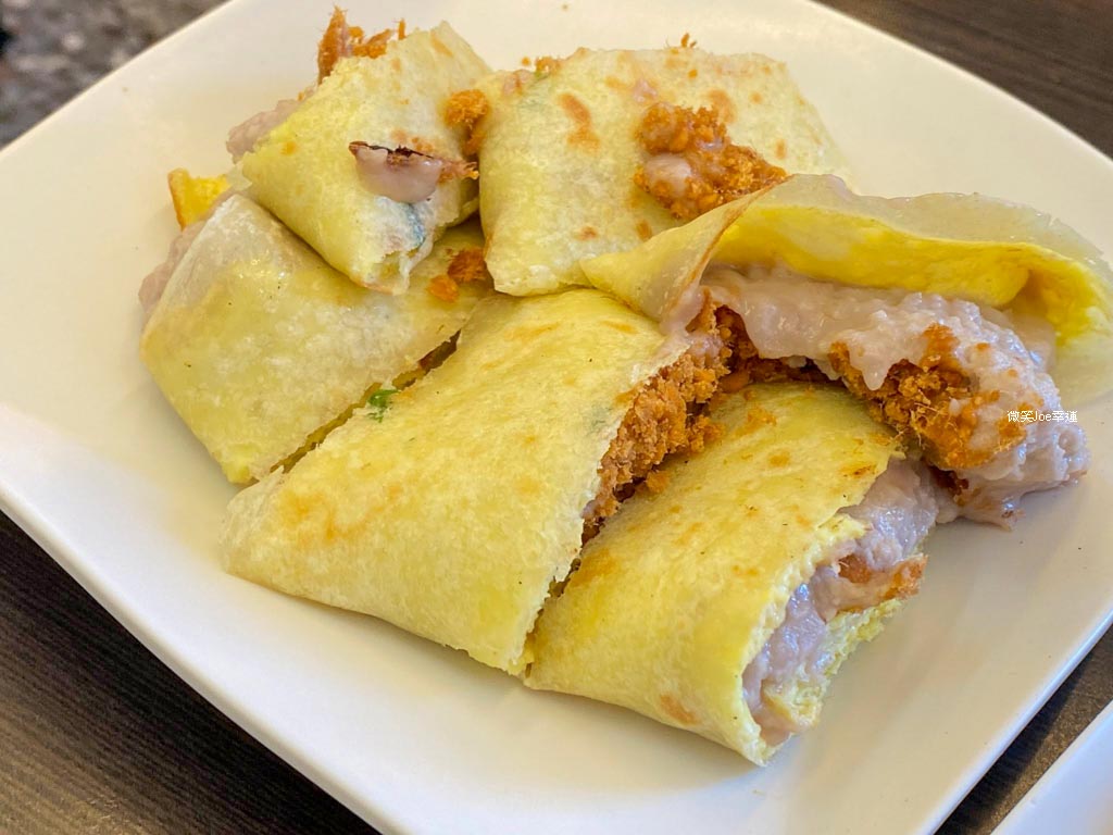 老闆娘本人親善,店裡口味多數大眾化,品項不少且偶有季節限定餐點的早午餐,芋泥微甜軟綿肉鬆的纖維較短吃起來是酥酥的口感。完整食記介紹