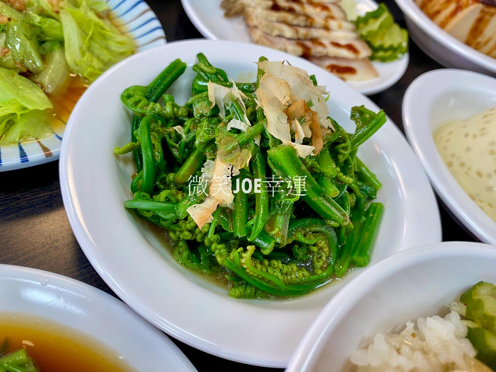 這三款的主要調味都是和滷肉飯的醬汁一樣,菜的上頭還看得見肉燥,這兒有個小插曲,我見菜單上有燙青菜請先生點三盤,他則看見小黑板寫著燙空心菜,就也沒多問,直接點結果送來的是我們最不會點的大陸妹,他馬上跟闆娘反應不是空心菜嗎?,闆娘回應『店裡的青菜有很多種,前幾天有來的客人都是吃到空心菜已經吃膩了,所以是大陸妹』,聽完後我們默默加點空心菜,幸好還有=_=,下有再來的話會自已多問一句青菜有那些?!而不是只看板子啦。