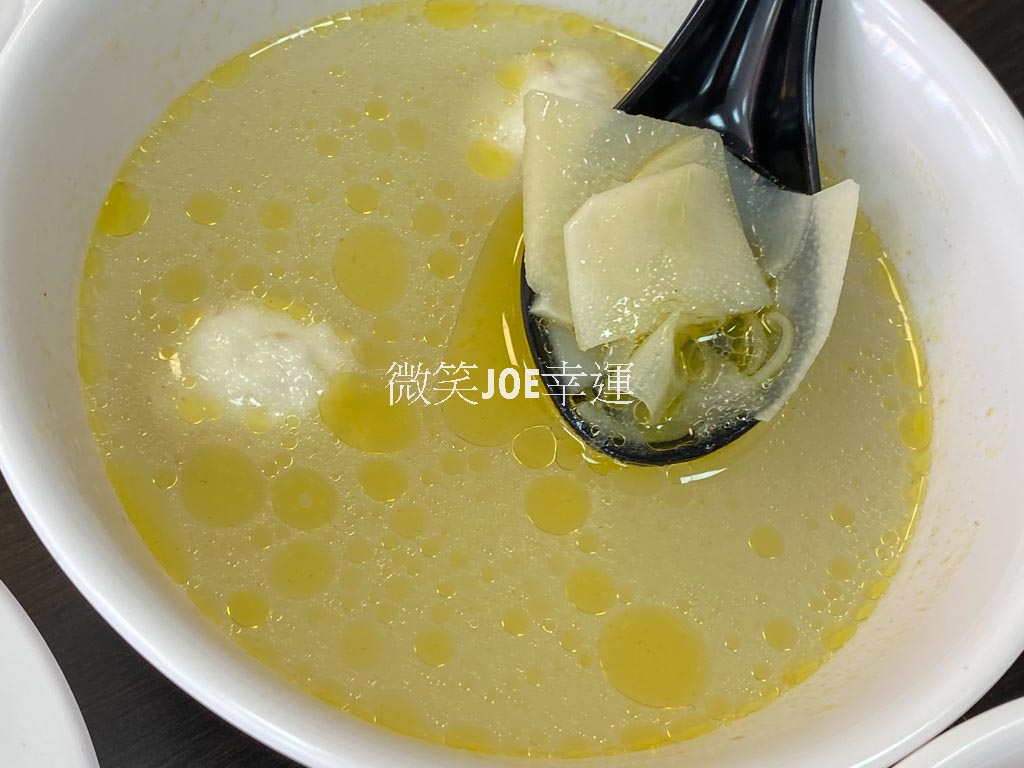 第一次吃,好奇裡頭料多少,在撈的時候闆娘過來看盯著說,湯裡的是雞油很香唷,撈完後我下回想喝湯可能會點味增湯了…我都還沒吃只有這些筍子跟我預期的筍子湯是以筍子為主的想法落差有點大,不過丸子有二粒,湯雖鹹了些但真的很香有雞湯感。