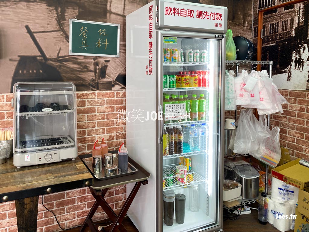 臨近櫃台處還有飲料餐具與佐料,飲品區價格都有標明從15元的水至40元的台啤都有(未成年請勿飲酒)。