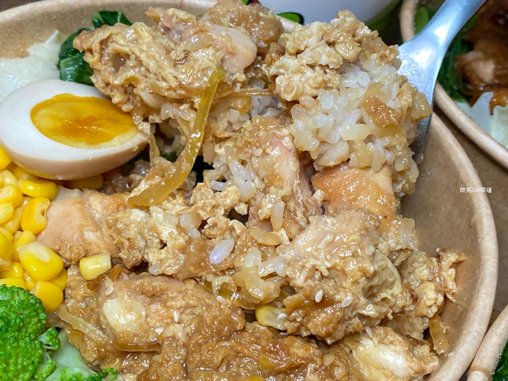 微煎過的雞肉柔嫩加上蛋液包覆讓飯中增添了濕潤度。