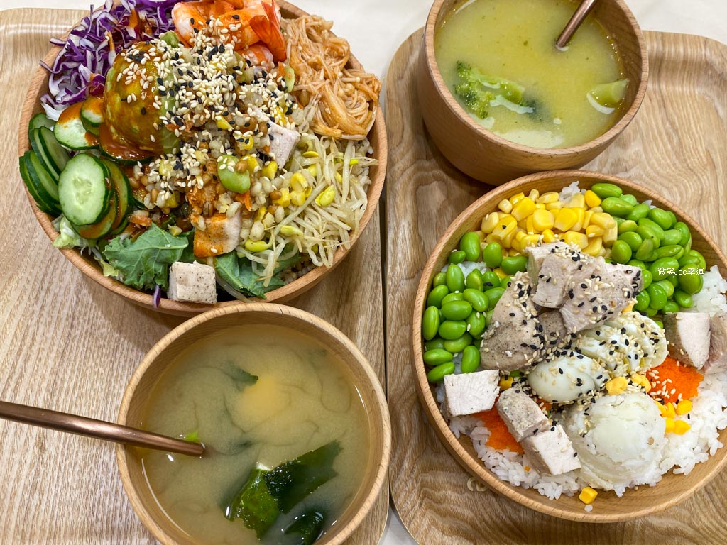 店內食用是使用木碗呈現,外帶則是紙盒裝,購買了幾次後,覺得品質還算穩定,對於如果較偏好沒過重調味原型食物的人來說還不賴,而且加入會員後用LINE預訂挺方便的。