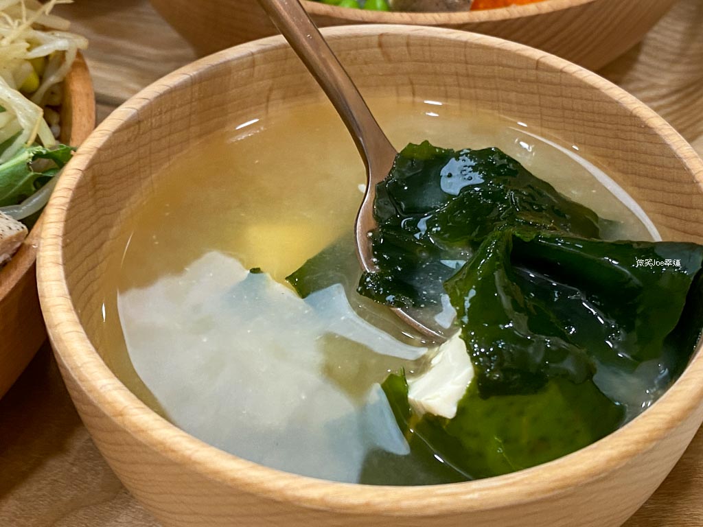 ,花椰菜馬鈴薯蔬菜湯裡的胡椒味明顯偏義式調味,菜不少湯底本身帶有些許菜的甜味,味噌湯的味道足。