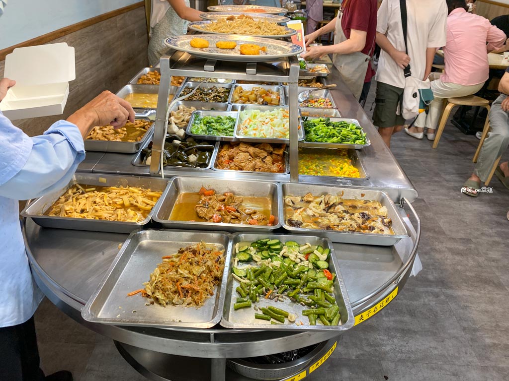 初訪時滿滿都是人,每天供應白飯、地瓜粥、油飯(限量)、素粽等主食,146是炒麵/25炒冬粉/3炒米粉店家待人親切,留意熟客的情況,與客人之間的互動感很有溫度,讓客人就像是去朋友家吃飯一樣熟門熟路完整食記請點