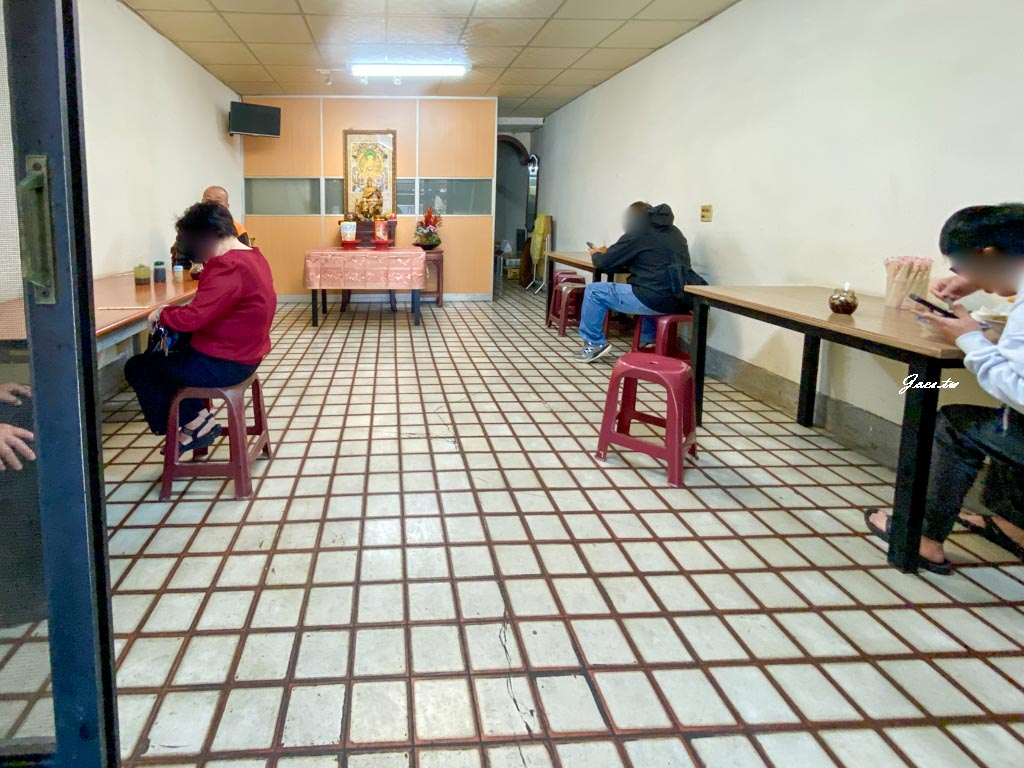 很是居家的感覺,中間擺著神明桌,店內二側放著幾套桌椅。