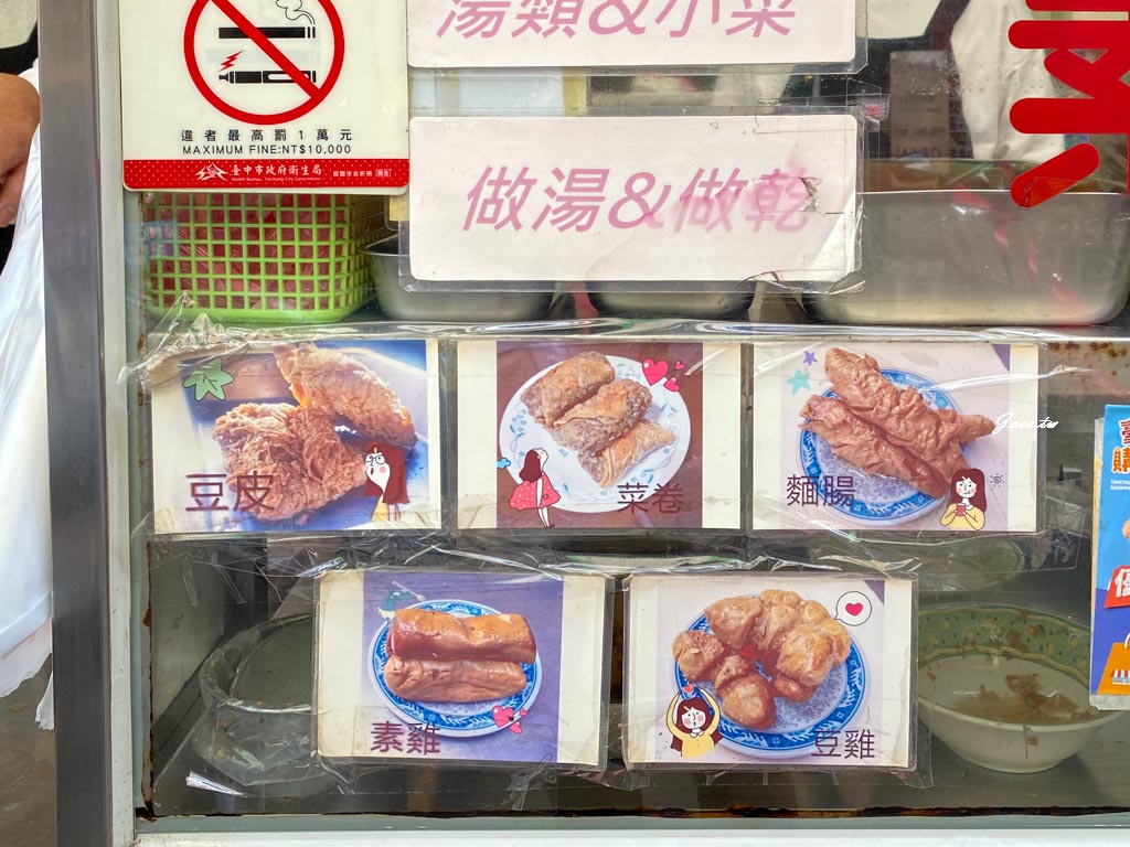 以麵食與小菜為主,小菜都可以選要做乾或湯的,攤位前有貼著小菜的實體照。