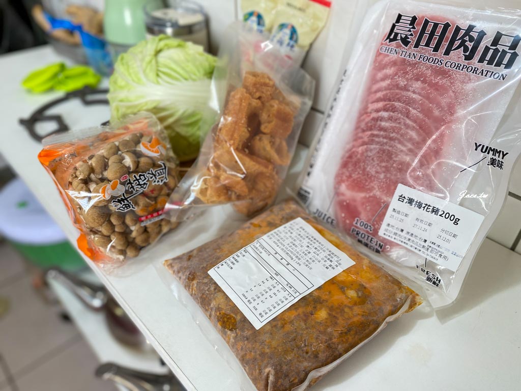 準備這些配料加鍋底三個人吃蠻剛好的,旁邊還有一盒版豆腐沒入鏡到。