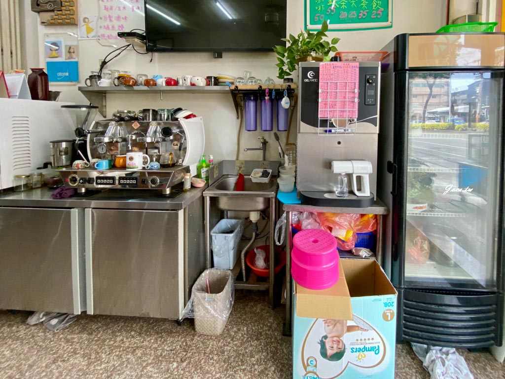 入內完全是居家感,有二位年幼的孩子正在店內吃飯,後方則有神明廳右側是咖啡機左側有一些零食和耳掛包。