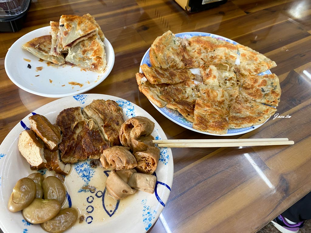 點了紅豆煎餅/九層塔蛋餅(店家做成抓餅)/豆包/麵腸,滷味30元這些包含璃魚燒共125,其中皇帝豆與豆制海帶結是贈送的,抓餅與紅豆煎餅就是市售加工品風味,但抓餅煎得非常酥香,每一口都吃得到脆感。
